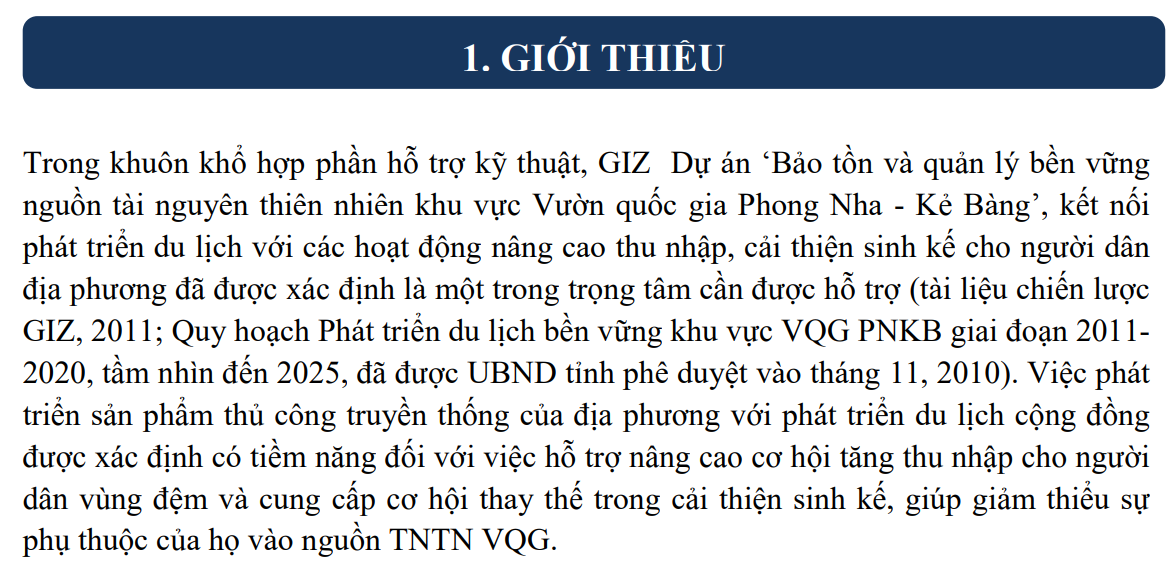 Đề xuất sơ bộ Phát triển du lịch cộng đồng tại vùng đệm Vườn quốc gia Phong Nha – Kẻ Bàng