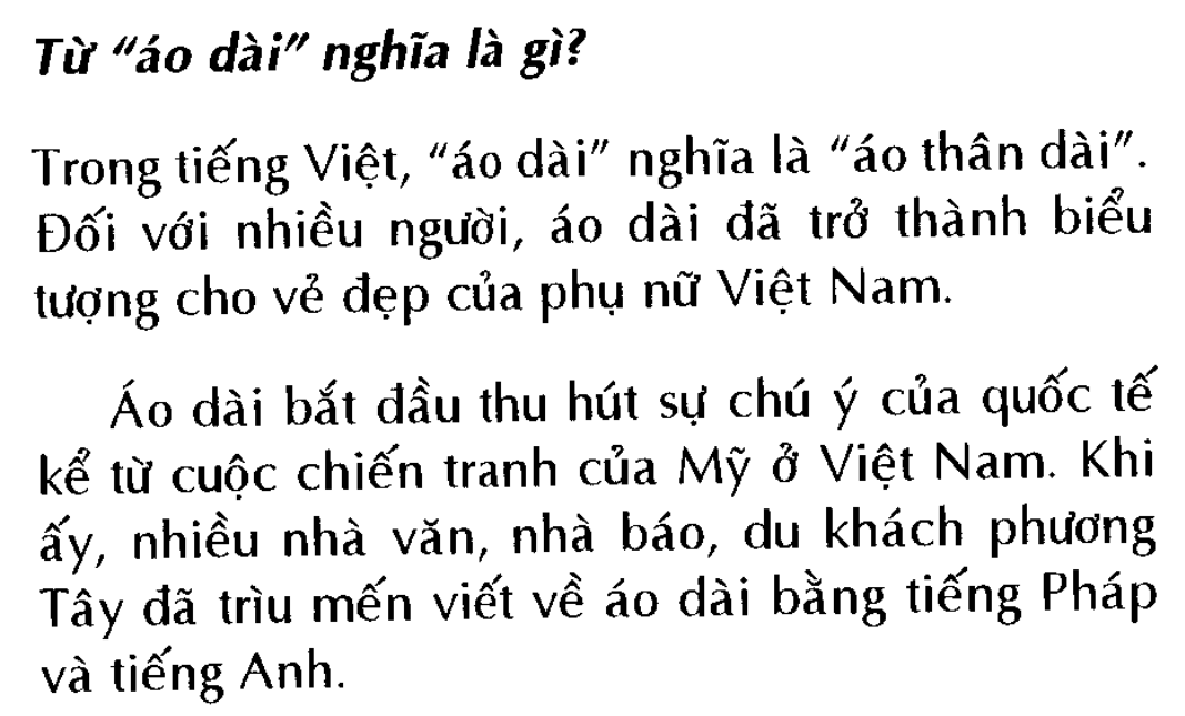 Cuốn sách “Áo Dài – Women’s long dress” được viết dưới dạng song ngữ Anh – Việt, giới thiệu về tà Áo Dài của phụ nữ Việt Nam – một nét đặc trưng của văn hóa Việt Nam: Từ “Áo Dài” nghĩa là gì?Một vài nhận xét về áo dài.Áo dài xuất hiện từ bao giờ. Cuộc cách tân bắt đầu từ khi nào,… Mời các bạn cùng tham khảo nội dung chi tiết.