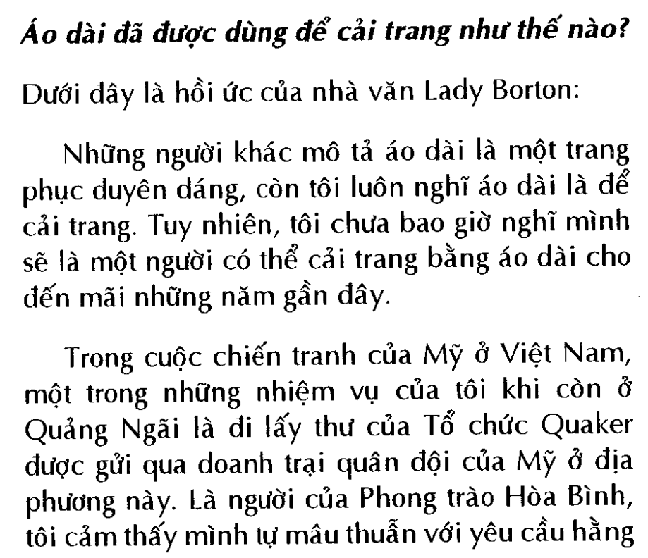Lịch sử chiếc áo dài Việt Nam và những câu chuyện về sự duyên dáng, về truyền thống, tinh thần dân tộc với chiếc áo dài, chiếc áo dài trong sinh hoạt, lễ tiệc, trong chiến đấu với quân thù, chiếc áo dài trong lòng người Việt xa quê và áo dài trong mắt người nước ngoài. Mời các bạn cùng tìm hiểu về lịch sử áo dài Việt quan phần 2 cuốn sách.