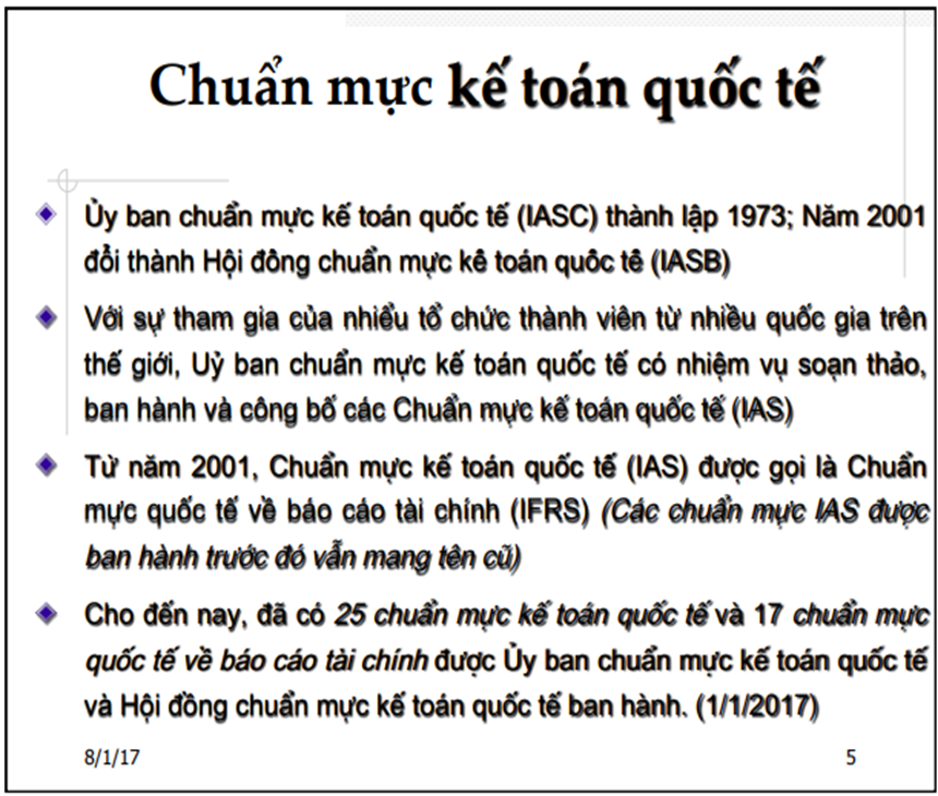 Bài giảng Chuẩn mực kế toán quốc tế, cung cấp cho người học những kiến thức như: Khuôn mẫu cho báo cáo tài chính; Các chuẩn mực về tài sản; Các chuẩn mực chi phí, doanh thu, nợ phải trả và chuẩn mực khác; Các chuẩn mực về báo cáo tài chính. Mời các bạn cùng tham khảo!