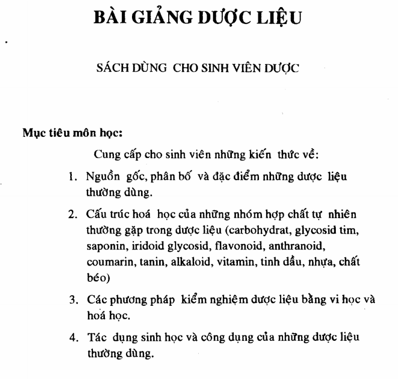 Tài liệu số Bài Giảng Dược Liệu Tập 1