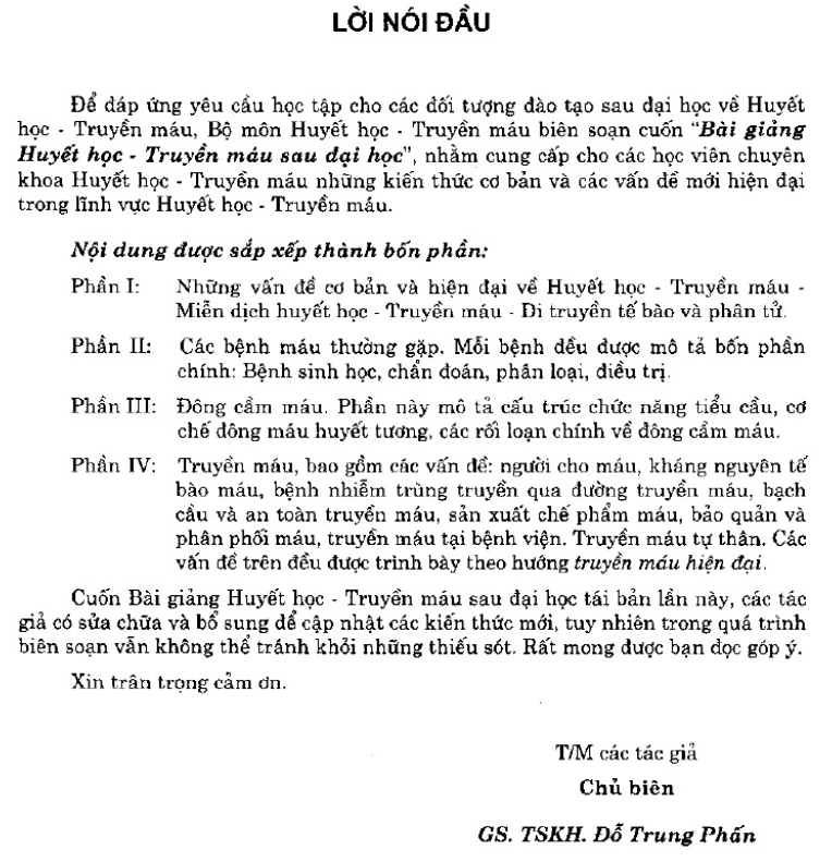 Tài liệu số Bài Giảng Huyết Học – Truyền Máu Sau Đại Học