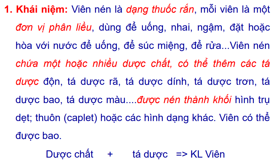 Bài giảng “Kỹ thuật bào chế viên nén” được biên soạn với mục tiêu giúp người học trình bày khái niệm, ưu nhược điểm, phân loại thuốc viên nén; nêu vai trò, đặc điểm, cách sử dụng của các nhóm tá dược: Độn, rã, dính, trơn, bao dùng để bào chế viên nén; thực hiện được các bước cơ bản của 3 phương pháp bào chế viên nén: Xát hạt ướt, xát hạt khô, dập thẳng;… Mời các bạn cùng tham khảo!