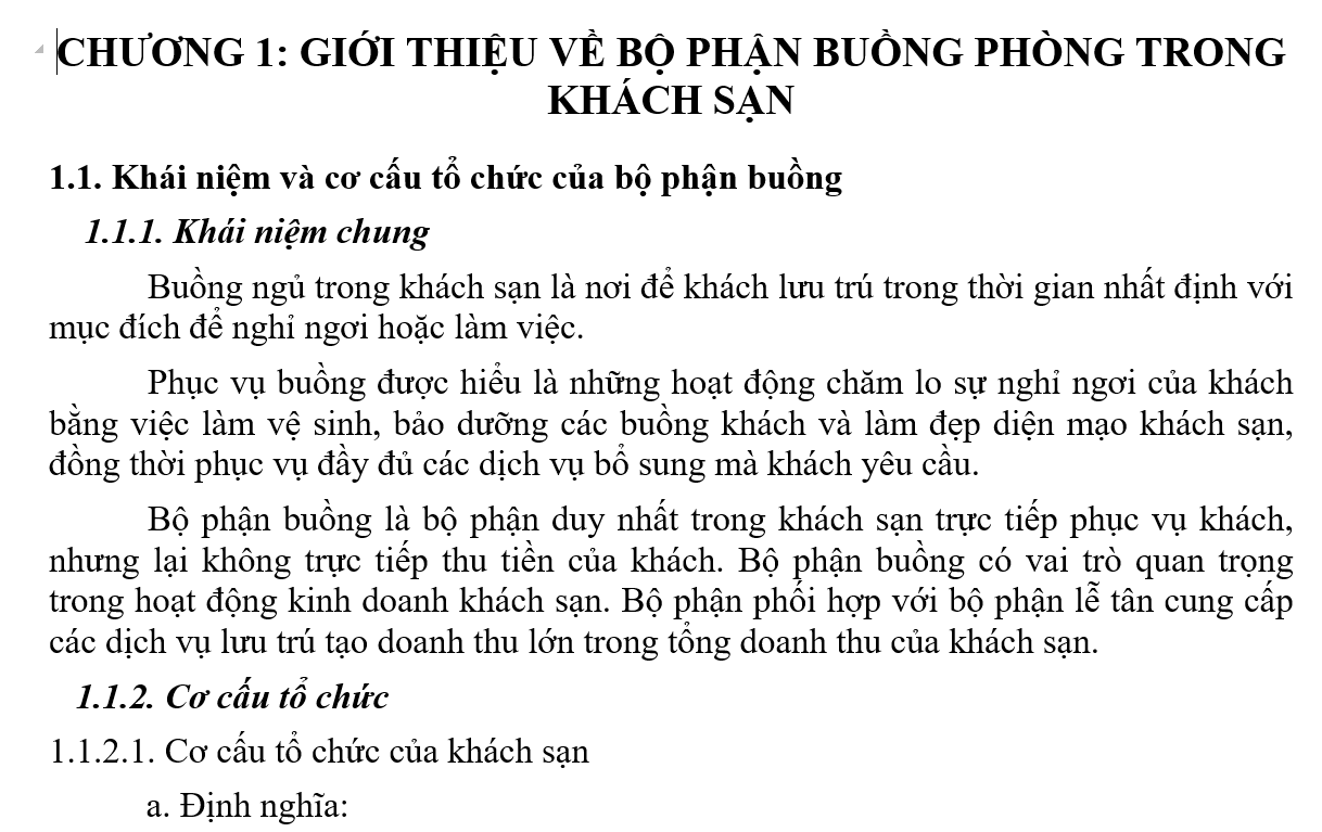 Tài liệu số Bài giảng môn Nghiệp vụ phục vụ buồng