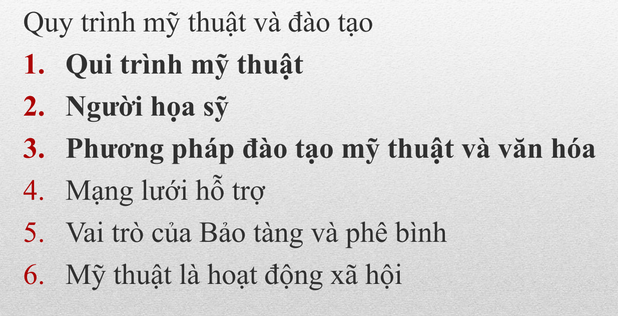 Bài giảng “Mỹ thuật cơ bản: Quy trình mỹ thuật và đào tạo” cung cấp cho người học các kiến thức về: Qui trình mỹ thuật, người họa sỹ, phương pháp đào tạo mỹ thuật và văn hóa, mạng lưới hỗ trợ, vai trò của Bảo tàng và phê bình, mỹ thuật là hoạt động xã hội. Mời các bạn cùng tham khảo.
