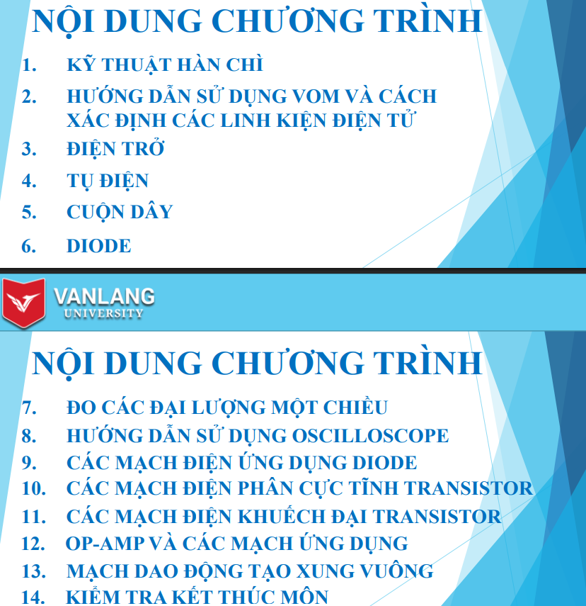 Bài giảng Thí nghiệm mạch điện – điện tử gồm các nội dung chính sau: Kỹ thuật hàn chì; Hướng dẫn sử dụng VOM và cách xác định các linh kiện điện tử; Điện trở; Diode; Tụ điện; Cuộn dây; Đo các đại lượng một chiều; Hướng dẫn sử dụng oscilloscope; Các mạch điện ứng dụng diode; OP-AMP và các mạch ứng dụng; Các mạch điện phân cực tĩnh transistor; Các mạch điện khuếch đại transistor; Mạch dao động tạo xung vuông.