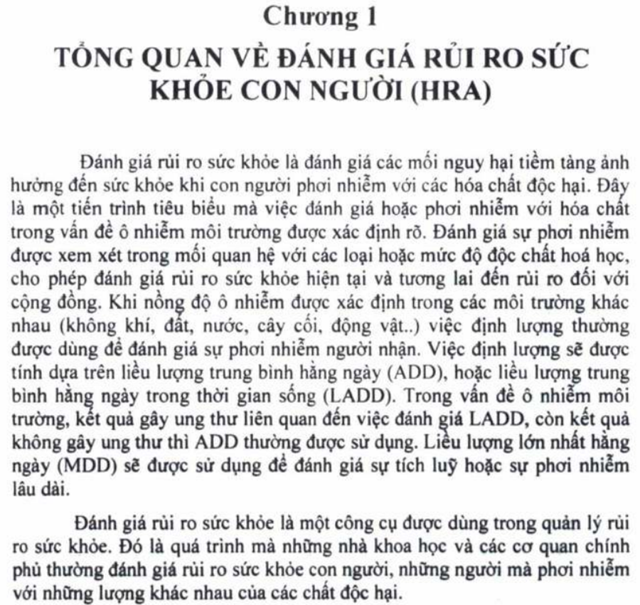 Tài Liệu Số Đánh giá rủi ro sức khỏe và đánh giá rủi ro sinh thái – Phần 1 Lưu