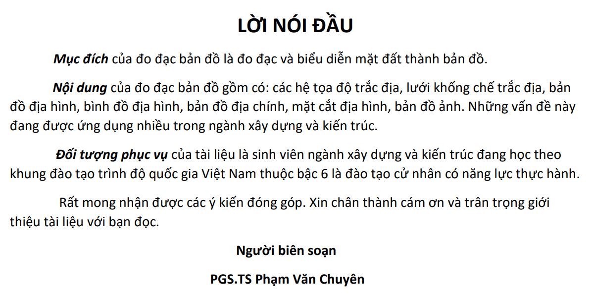 Nội dung của Giáo trình Đo đạc bản đồ gồm có: Các hệ tọa độ trắc địa, lưới khống chế trắc địa, bản đồ địa hình, bình đồ địa hình, bản đồ địa chính, mặt cắt địa hình, bản đồ ảnh. Những vấn đề này đang được ứng dụng nhiều trong ngành xây dựng và kiến trúc. Mời các bạn cùng tham khảo!