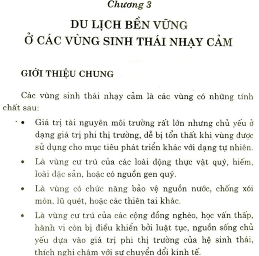 trình bày các vấn đề về du lịch bền vững ở các vừng sinh thái nhạy cảm, du lịch miền núi, du lịch vùng ven biển, du lịch sinh thái. Mời các bạn cùng tham khảo nội dung chi tiết.