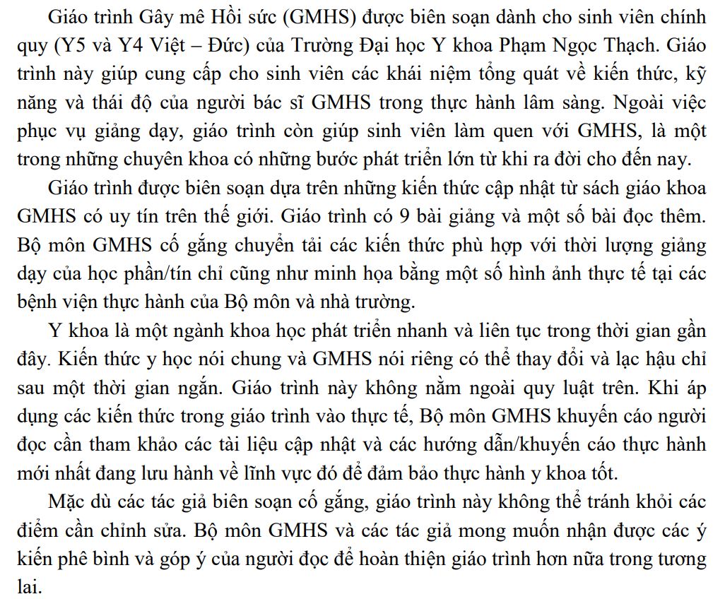 Giáo trình này giúp cung cấp cho sinh viên các khái niệm tổng quát về kiến thức, kỹ năng và thái độ của người bác sĩ GMHS trong thực hành lâm sàng. Ngoài việc phục vụ giảng dạy, giáo trình còn giúp sinh viên làm quen với GMHS, là một trong những chuyên khoa có những bước phát triển lớn từ khi ra đời cho đến nay.