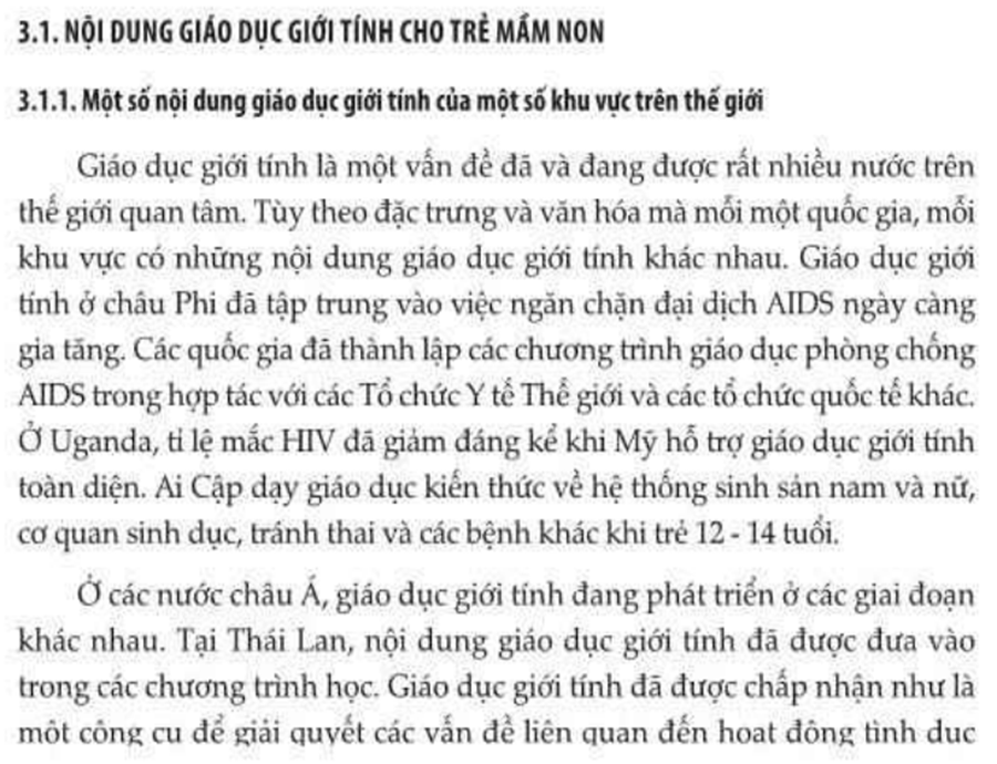 Giáo trình Giáo dục giới tính cho trẻ mầm non: Phần 2 giúp sinh viên nắm được những nội dung, phương pháp và hình thức giáo dục giới tính cơ bản cho trẻ mầm non; hiểu được các yêu cầu mà giáo viên cần nắm được khi giáo dục giới tính cho trẻ mầm non; lập kế hoạch giáo dục giới tính cho trẻ mầm non. Mời các bạn cùng tham khảo.