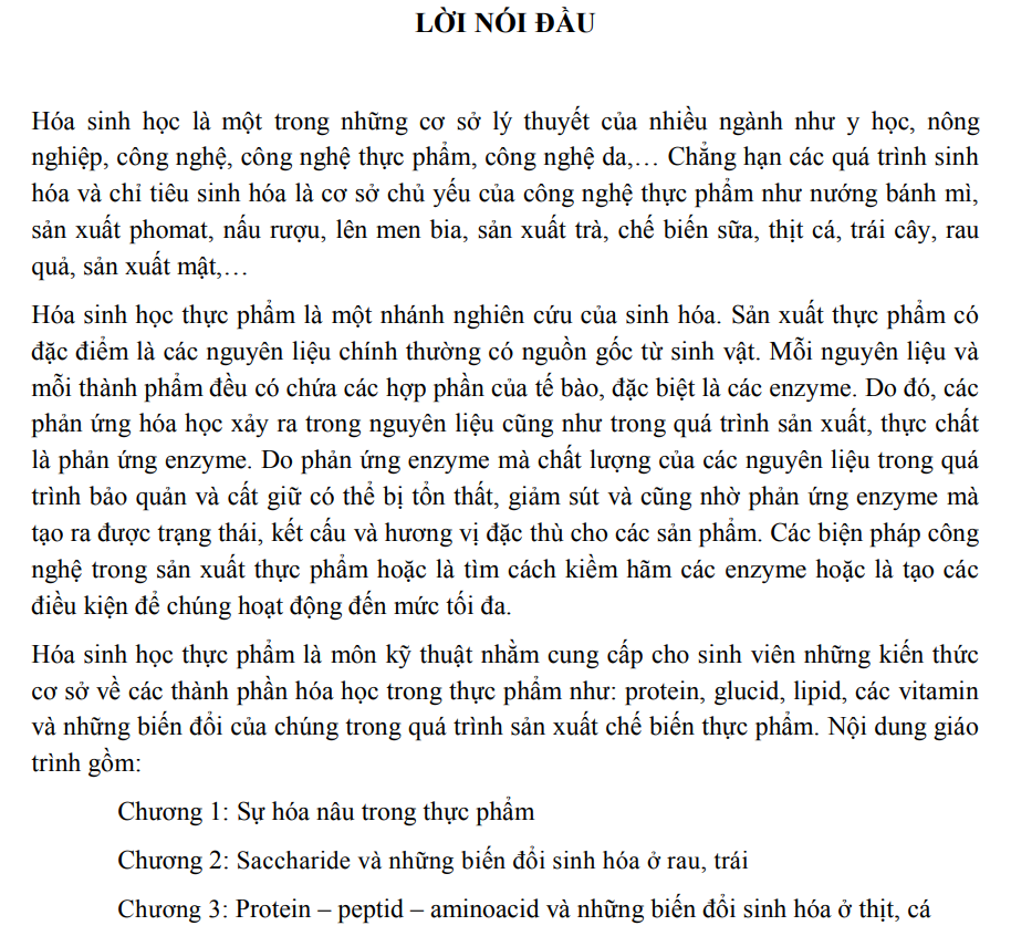 Tài liệu số Giáo trình Hóa sinh học thực phẩm