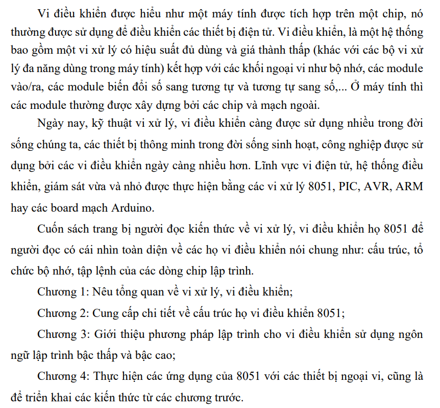 Cuốn giáo trình Kỹ thuật vi điều khiển trang bị người đọc kiến thức về vi xử lý, vi điều khiển họ 8051 để người đọc có cái nhìn toàn diện về các họ vi điều khiển nói chung như: Cấu trúc, tổ chức bộ nhớ, tập lệnh của các dòng chip lập trình. Mời các bạn cùng tham khảo nội dung chi tiết.