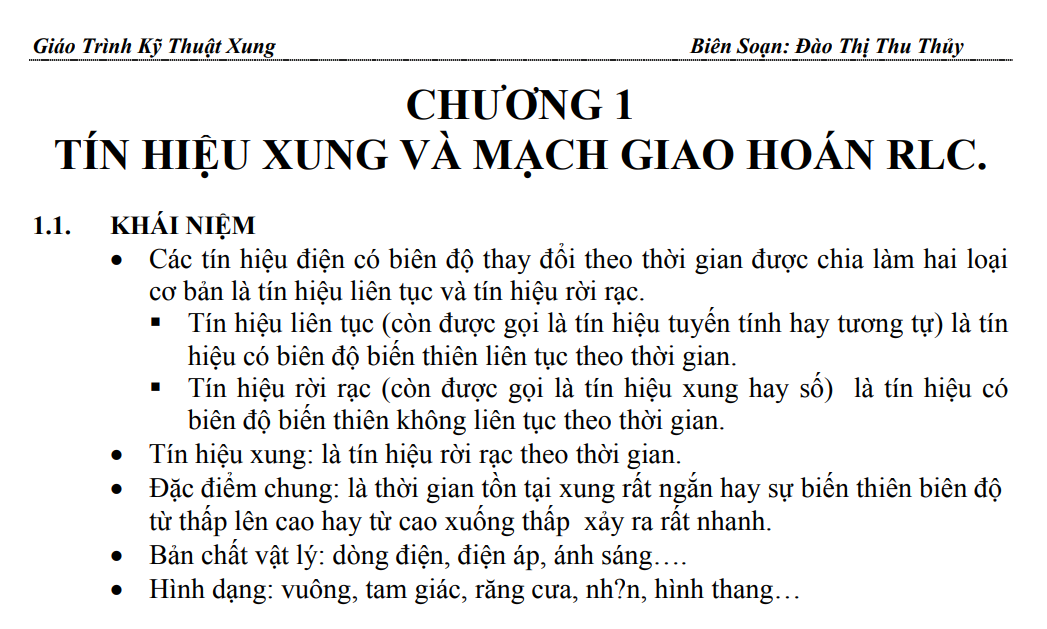 Kỹ thuật xung là môn học cơ sở của nghành Điện – Điện tử và có vị trí khá quan trọng trong toàn bộ chương trình học của sinh viên và học sinh, nhằm cung cấp các kiến thức liên quan đến các phương pháp cơ bản để tạo tín hiệu xung và biến đổi dạng tín hiệu xung. Giáo trình Kỹ thuật xung gồm 4 chương, được biên soạn cho hệ cao đẳng nhằm giúp sinh viên có các kiến thức cơ bản về tín hiệu xung và hiểu được các nguyên lý cơ bản của các mạch tạo…