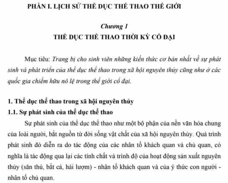 Nội dung bao gồm hai phần chính, 13 chương. Phần I – Lịch sử thể dục thể thao thế giới gồm 6 chương. Phần II – Lịch sử thể dục thể thao Việt Nam gồm 7 chương. Mời các bạn cùng tham khảo!