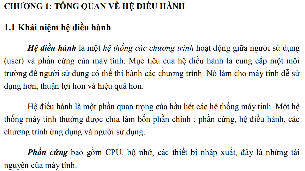 Tài liệu số Giáo trình Nguyên lý hệ điều hành Phần 1