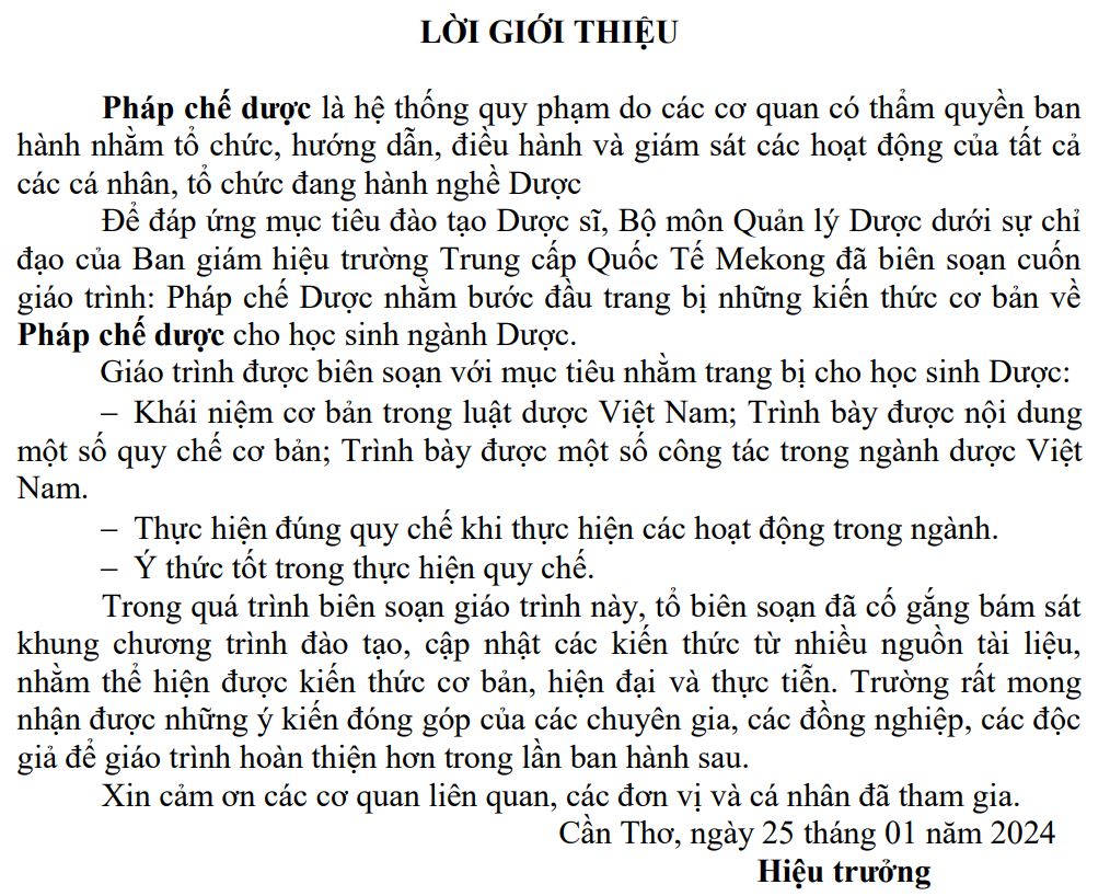 Tài liệu số Giáo trình Pháp chế dược