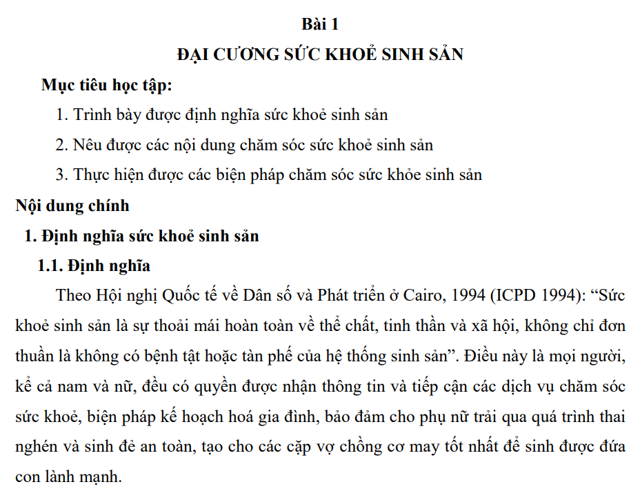 Giáo trình Sức khỏe sinh sản (Ngành: Y sỹ – Trình độ: Trung cấp) – Trường Trung cấp Quốc tế Mekong trình bày những kiến thức cơ bản về sức khỏe sinh sản; Trình bày nguyên nhân, triệu chứng, tiến triển và biến chứng một số bệnh thường gặp trong Sản Phụ khoa; Giáo dục sức khỏe về Dân Số – Kế hoạch hóa gia đình; Về kỹ năng: Làm bệnh án Sản Phụ khoa; Về năng lực tự chủ và trách nhiệm: Có trình độ năng lực và kỹ năng xử lý các tình huống có liên quan về sức khỏe sinh sản.