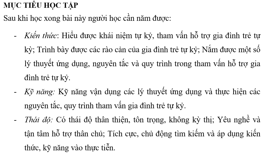 Tài liệu số Giáo trình Tham vấn hỗ trợ gia đình trẻ tự kỷ