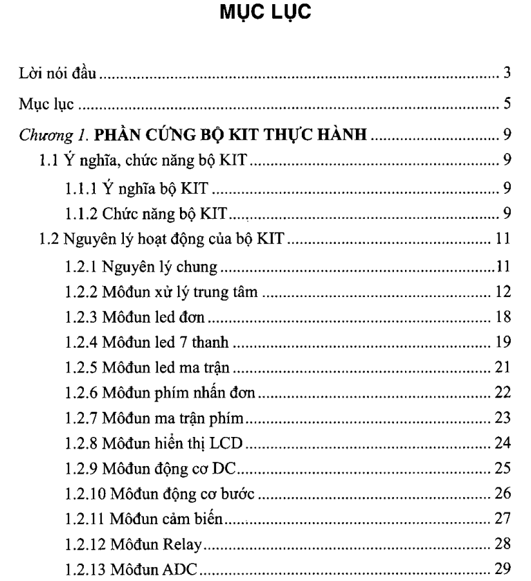 Giáo trình được biên soạn nhằm hỗ trợ quá trình học tập và thực hành lập trình C ứng dụng cho vi điều khiển. Nội dung giáo trình tập trung vào các bài tập thực hành, giúp người đọc dễ dàng nắm bắt lý thuyết và áp dụng ngay vào các ứng dụng thực tế. Với bố cục rõ ràng, sắp xếp theo trình tự từ cơ bản đến nâng cao, giáo trình cung cấp các hướng dẫn chi tiết từng bước, đảm bảo việc tiếp cận và làm chủ các kỹ thuật lập trình ứng dụng được thực hiện hiệu quả và khoa học.