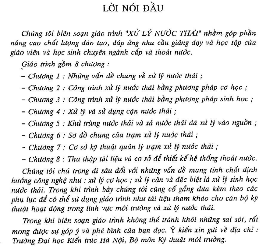 Tài liệu số Giáo trình Xử lý nước thải (Tái bản) – Phần 1 Lưu