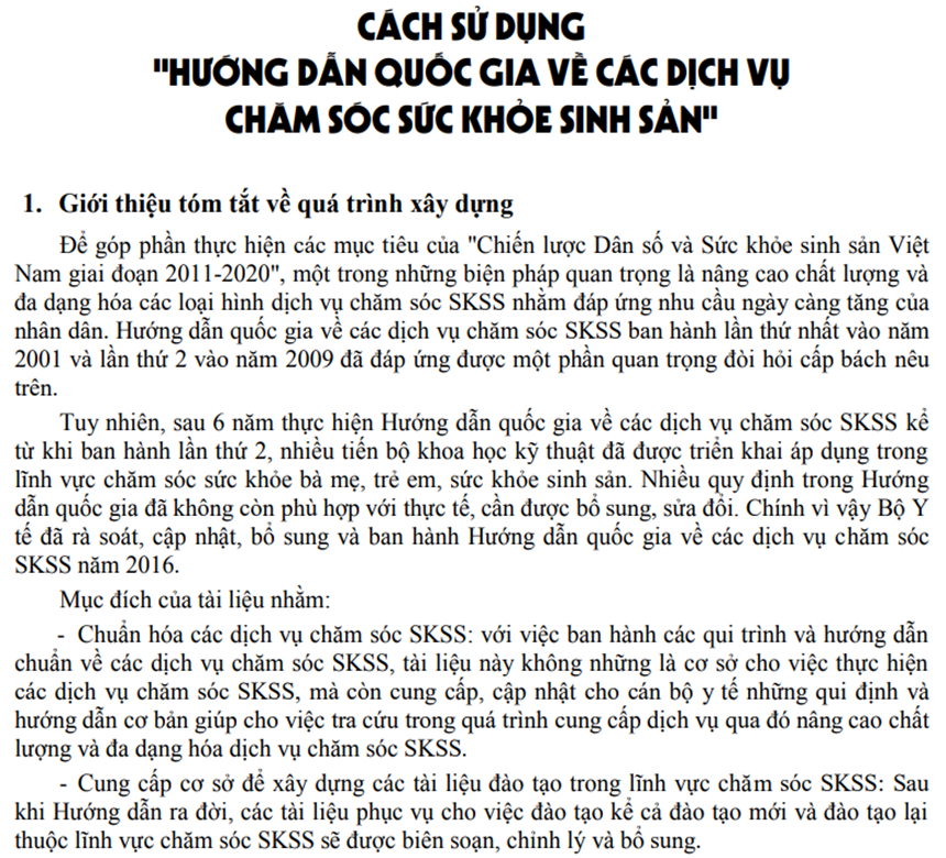 Tài Liệu Số Hướng dẫn quốc gia về các dịch vụ chăm sóc sức khỏe sinh sản (Năm 2016)
