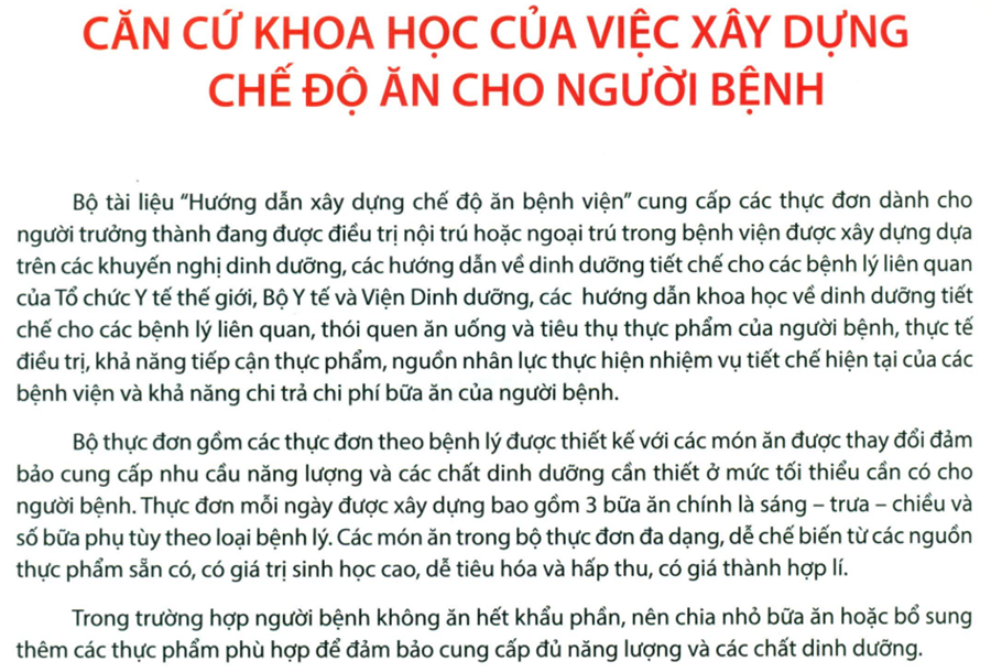 “Hướng dẫn xây dựng chế độ ăn bệnh viện: Phần 1”