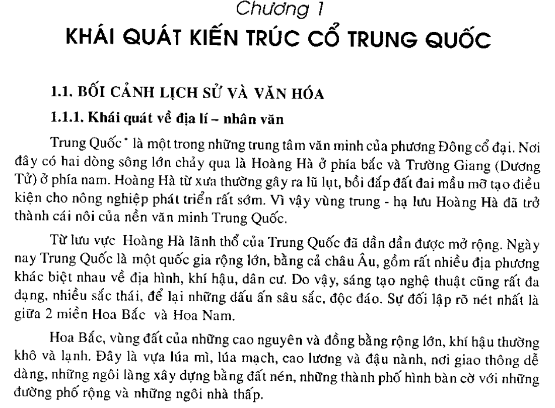 Trải qua hàng chục thế kỷ, nền kiến trúc cổ Trung Quốc có nhiều thành tựu với những đặc điểm đặc trưng cơ bản. Sách có kết cấu gồm 6 chương. Phần 1 sau đây gồm các chương sau: Chương 1 Khái quát kiến trúc cổ Trung Quốc, Chương 2 Đô thị – Thành lũy và cầu, Chương 3 Kiến trúc cung điện và lăng mộ.
