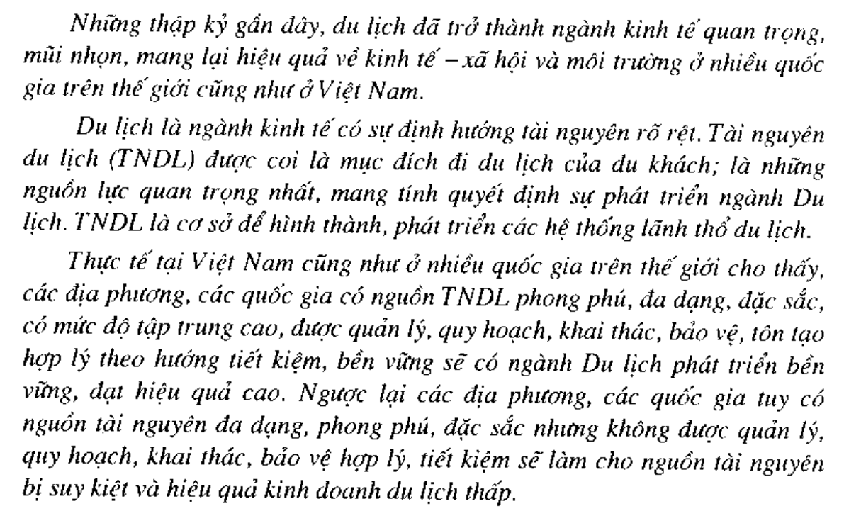 Phần 1 cuốn sách “Tài nguyên du lịch” của hai tác giả Bùi Thị Hải Yến (chủ biên) và Phạm Hồng Long gồm nội dung 4 chương đầu tài liệu, trình bày những vấn đề lí luận và bức tranh chung về tài nguyên du lịch; điều tra, đánh giá: dẫn luận tài nguyên du lịch; điều tra, đánh giá tài nguyên du lịch; đánh giá tác động của các hoạt động du lịch đến tài nguyên và môi trường; quản lí, sử dụng, bảo vệ và tôn tạo tài nguyên môi trường du lịch.