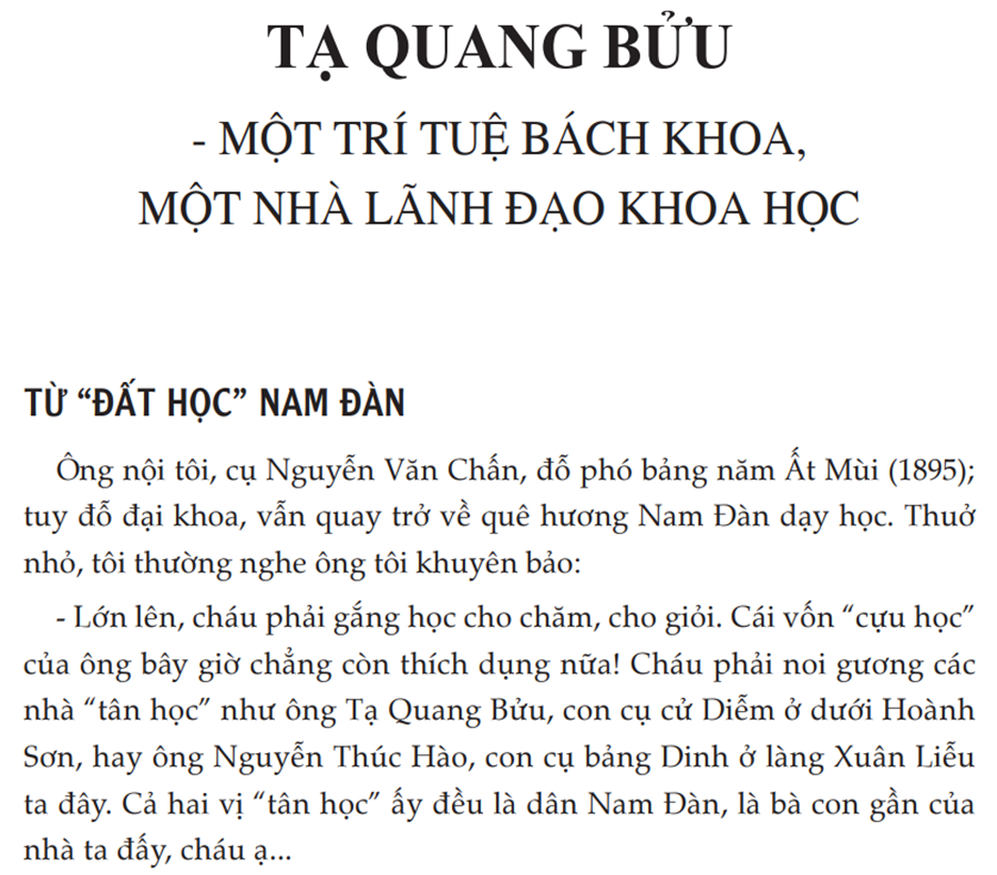 Cuốn sách “Trí thức tinh hoa Việt Nam đương đại – Một số chân dung” khắc họa chân dung rõ nét, sinh động 56 gương mặt trí thức Việt Nam tiêu biểu trong và ngoài nước, đủ mọi lĩnh vực. Nội dung cuốn sách được sắp xếp theo ba chương: Chương 1, trí thức thế hệ thứ nhất (từ sau Cách mạng Tháng Tám năm 1945); chương 2, trí thức các thế hệ tiếp theo (từ sau ngày Hà Nội giải phóng năm 1954); chương 3, trí thức người Việt Nam ở nước ngoài. Trong từng chương, sự sắp đặt các nhân vật trước sau chỉ căn cứ vào chữ tên nhân vật ấy để xếp theo trật tự chữ cái tiếng Việt (a, b, c…). Mời các bạn cùng tham khảo phần 1 cuốn sách sau đây.
